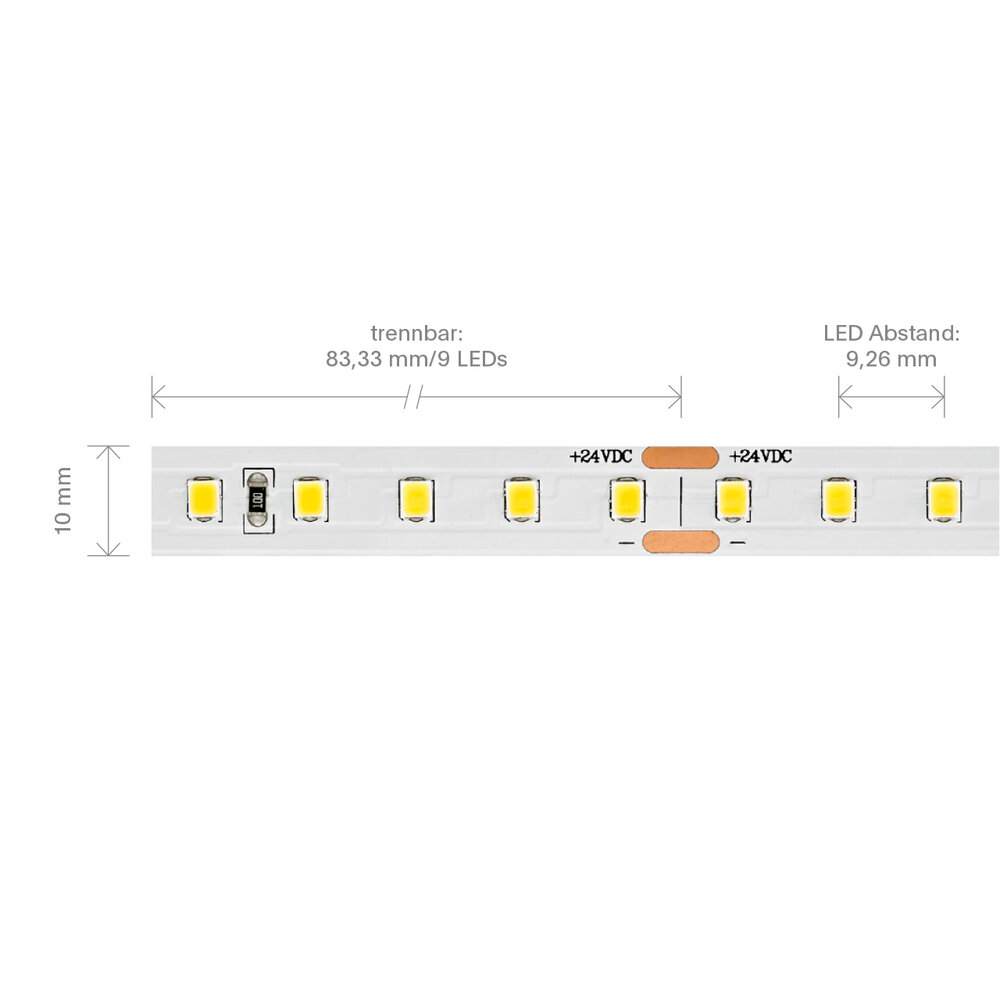 Ein enges Binning mit nur 3 SDCM garantiert eine homogene Lichtfarbe sowohl auf dem Streifen als auch bei unterschiedlichen Streifen dieses Typs.