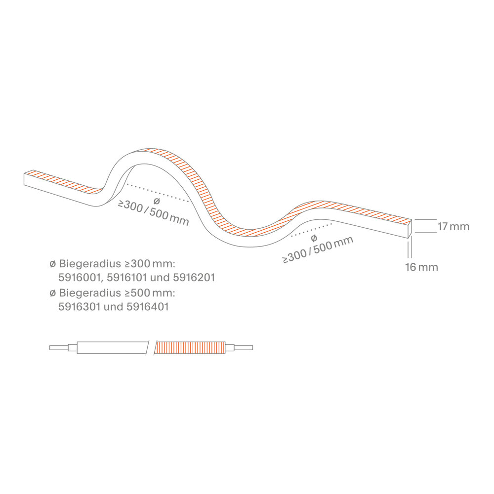 Unsere 10W ART 3D STREIFEN IP67 lässt sich horizontal und vertikal verbiegen. Durch die homogene Lichtverteilung ohne erkennbare Lichtpunkte sowie den hochwertigen, satinierten Polyurethan-Verguss benötigt Er keine Abdeckung auf dem Profil mehr. Die Wärmeableitung erfolgt bereits durch den PU-Verguss und eine Alu- oder Acryl-Schiene dient der Montage oder Führung.