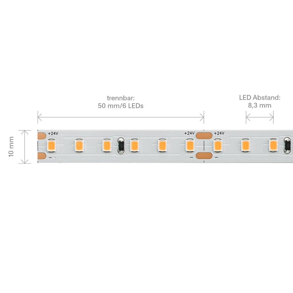 Unsere 9,6W EXPERT LONG DISTANCE Vario Cut 24V wird für Sie auf Ihr Wunschmaß produziert. Wählen Sie einfach eine Länge von bis zu 10 Meter aus.