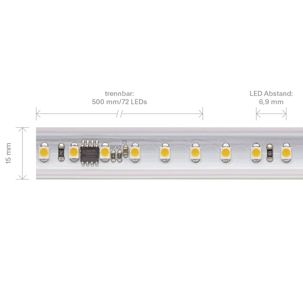 Unsere 8W HOCHVOLT IP65 ermöglichen völlig neue Möglichkeiten um Ihr Lichtprojekt zu realisieren. Dies liegt besonders an der maximal betreibbaren Länge von 50 Metern mit nur einer Einspeisung auf 230V.