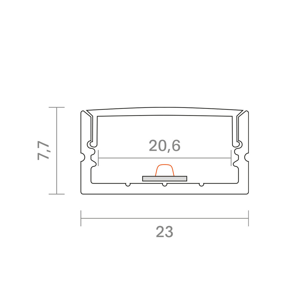 Unser Aufbauprofil 20 in der 1m-Variante findet seinen Einsatzbereich an Wand und Decke. Durch die besondere Breite kann ein Doppelstreifen oder zwei Bänder parallel verbaut werden. Des Weiteren wird es zur Wärmeableitung des LED-Streifen verwendet, wodurch sich die Lebensdauer des verbauten Produktes verlängert. Zusätzlich dient es als Schutz vor Staub und Feuchtigkeit. In Verbindung mit einer opalen Abdeckung wird das Licht gestreut und das Lichtbild deutlich homogener. Alternativ kann auch eine klare Abdeckung verbaut werden. In das Profil können LED-Streifen bis zu einer maximalen Breite von 20,6mm eingebaut werden.