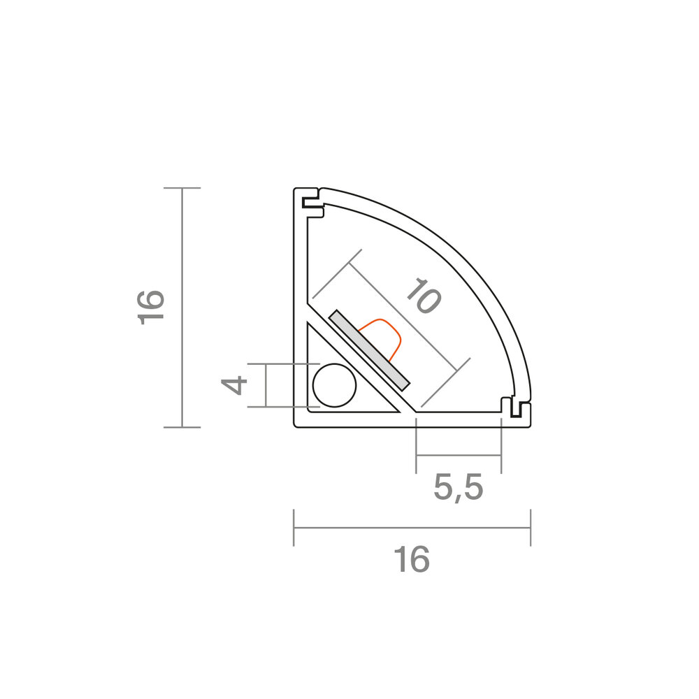 Unser Eckenbauprofil 10 in der 1m-Variante findet seinen Einsatzbereich an Wand und Decke. Durch die angewinkelte Liegefläche des LED-Bandes von 45°, wird der Raum optimal ausgeleuchtet. Des Weiteren wird es zur Wärmeableitung des LED-Streifen verwendet, wodurch sich die Lebensdauer des verbauten Produktes verlängert. Zusätzlich dient es als Schutz vor Staub und Feuchtigkeit.