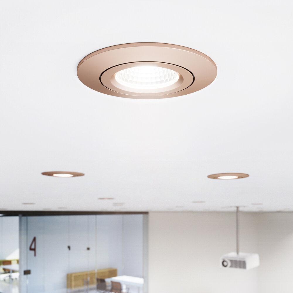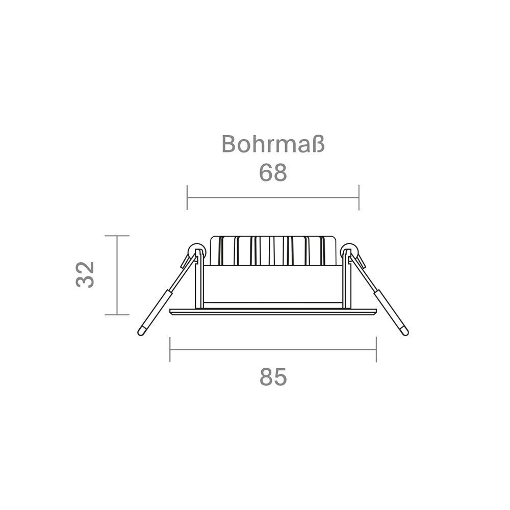 Unser 6W Downlights 68 Diled zeichnen sich durch eine kompakte Bauform mit ultraflacher Einbautiefe von 32mm und Direktanschluss an 230 V aus. Optisch sind sie von einer Halogenlampe kaum zu unterscheiden. Dank der Abstrahlung über den Reflektor ist das Licht völlig blendfrei.