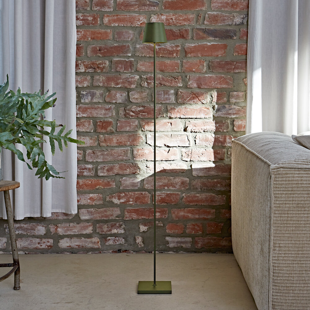 Innen & Außen: Die dimmbare Akku-Stehleuchte für den Wohn- und Außenbereich hält dank Schutzart IP54 (spritzwassergeschützt) auch Regenschauer aus.
