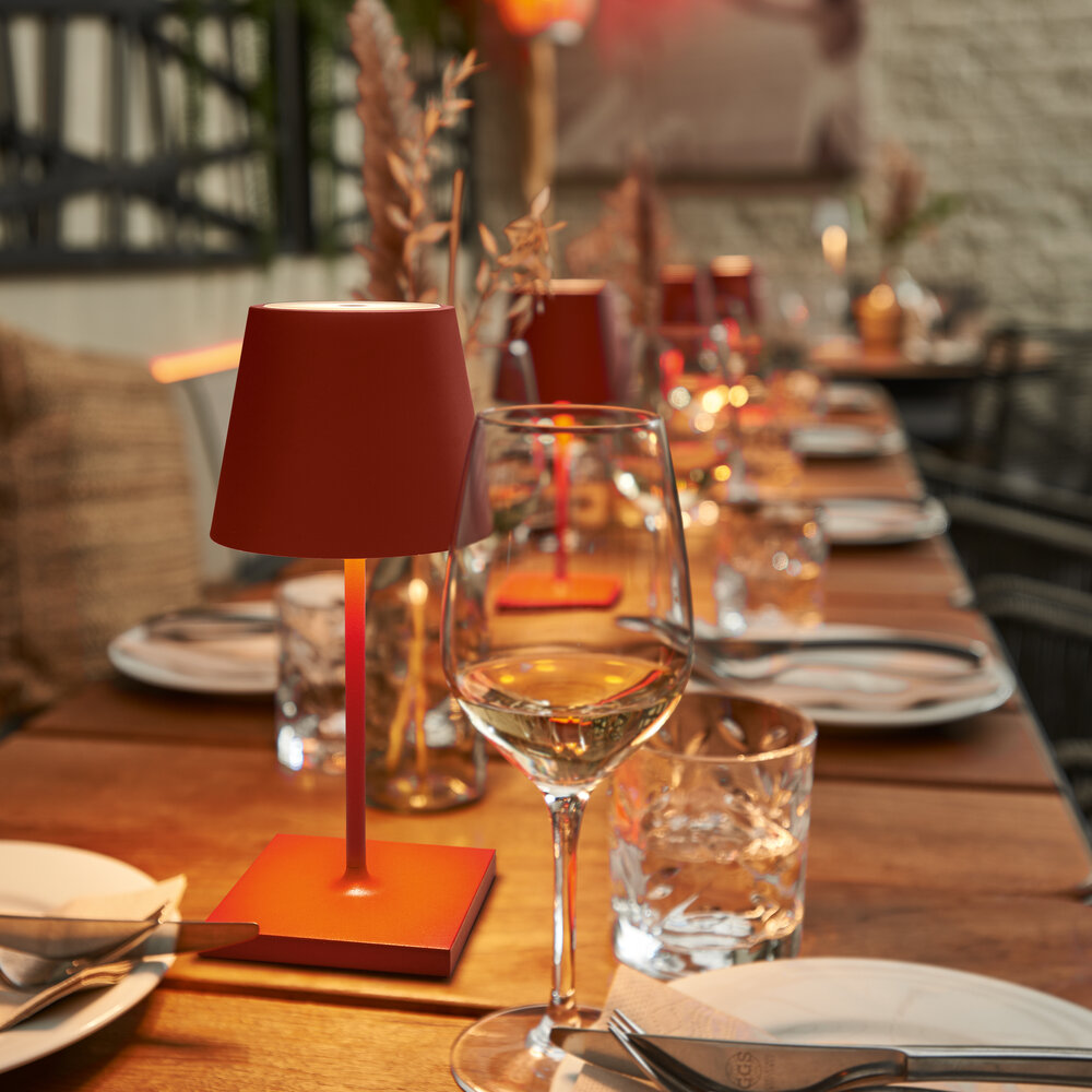 Innen & Außen: Die dimmbare Akku-Tischleuchte für den Wohn- und Außenbereich hält dank Schutzart IP54 (spritzwassergeschützt) auch Regenschauer aus.