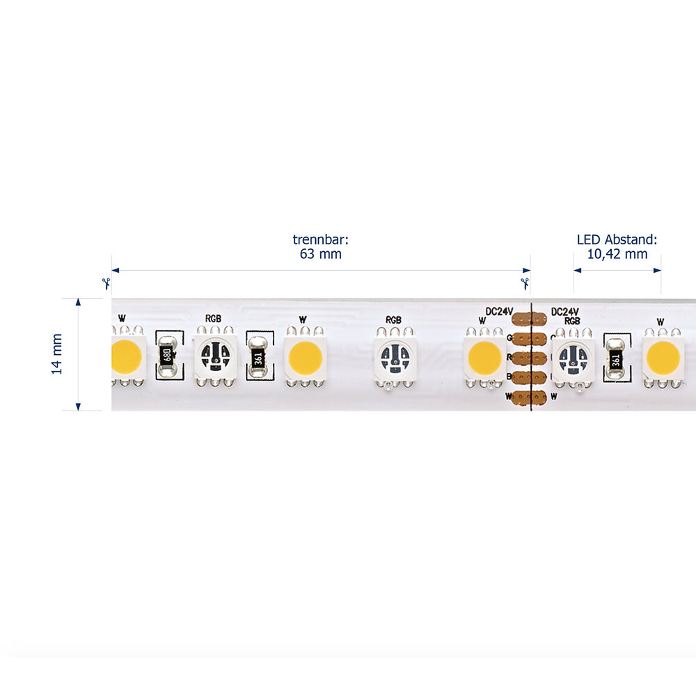 19,2W/m RGB/W LED-Streifen RGB/4000K 5m 96LED/m IP68 24V 900lm/m RA90 -Abverkaufsartikel-