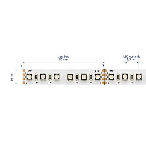 21,6W/m Farbige LED-Streifen RGB 3m 120LED/m IP20 24V 636lm/m RA80 -Abverkaufsartikel-