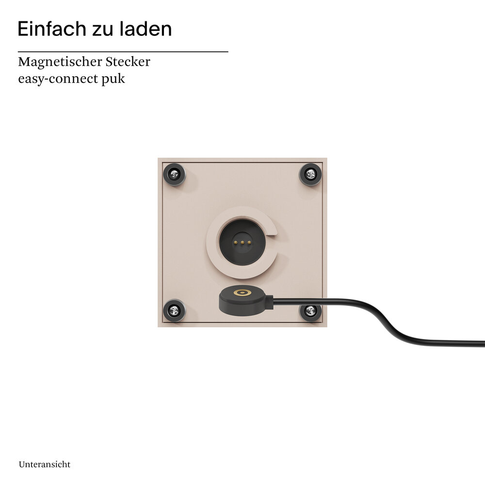 Wiederaufladbar: Mit dem beiliegenden USB-Netzteil und dem 1,2 m langen Ladekabel mit magnetischem easy-connect puk lässt sich die Akkuleuchte bequem und unkompliziert aufladen. So leuchtet sie bis zu 9 Stunden und das ganz ohne Kabel (Akku Li-Ion, 3.000 mAh).