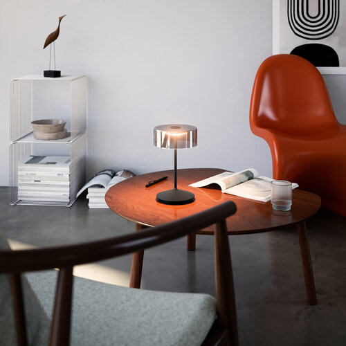 Stilvoll & Individuell: Der hochwertige, mundgeblasene Lampenschirm der Numotion ist bei jeder Leuchte ein Einzelstück und sorgt mit seinem Retrolook im Wohnzimmer, Schlafzimmer oder Esszimmer für stimmungsvolle Lichtakzente auf dem Ess- oder Beistelltisch. So vereint die Numotion handwerkliches Können mit modernster, kabelloser LED-Technik.