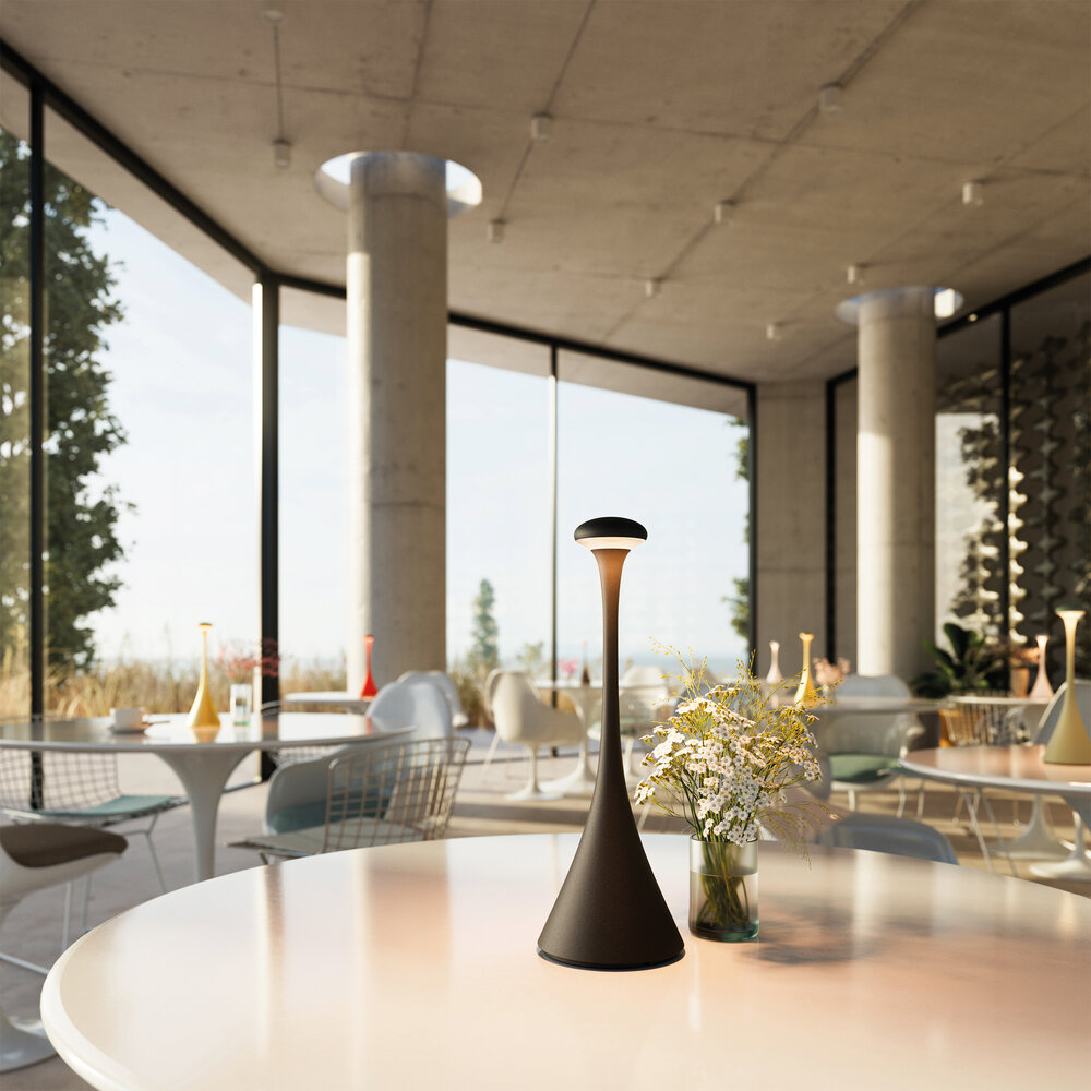 Innen & Außen: Die dimmbare Akku-Tischleuchte für den Wohn- und Außenbereich hält dank Schutzart IP54 (spritzwassergeschützt) auch Regenschauer aus.