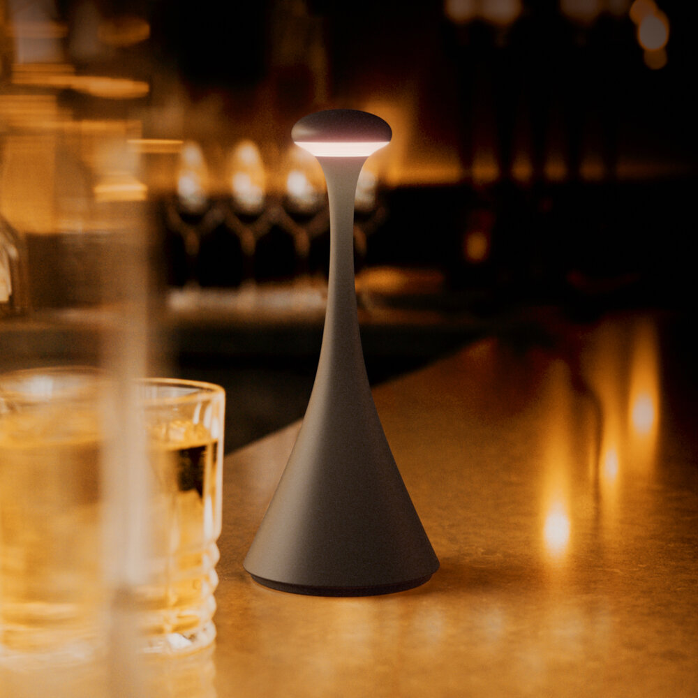 Akku-Tischleuchte Nudrop mini 217mm nachtschwarz 1,8W Flex-Mood 2200K/2700K IP54 133lm Ra85 dim