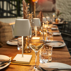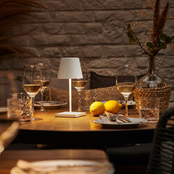 Innen & Außen: Die dimmbare Akku-Tischleuchte für den Wohn- und Außenbereich hält dank Schutzart IP54 (spritzwassergeschützt) auch Regenschauer aus.