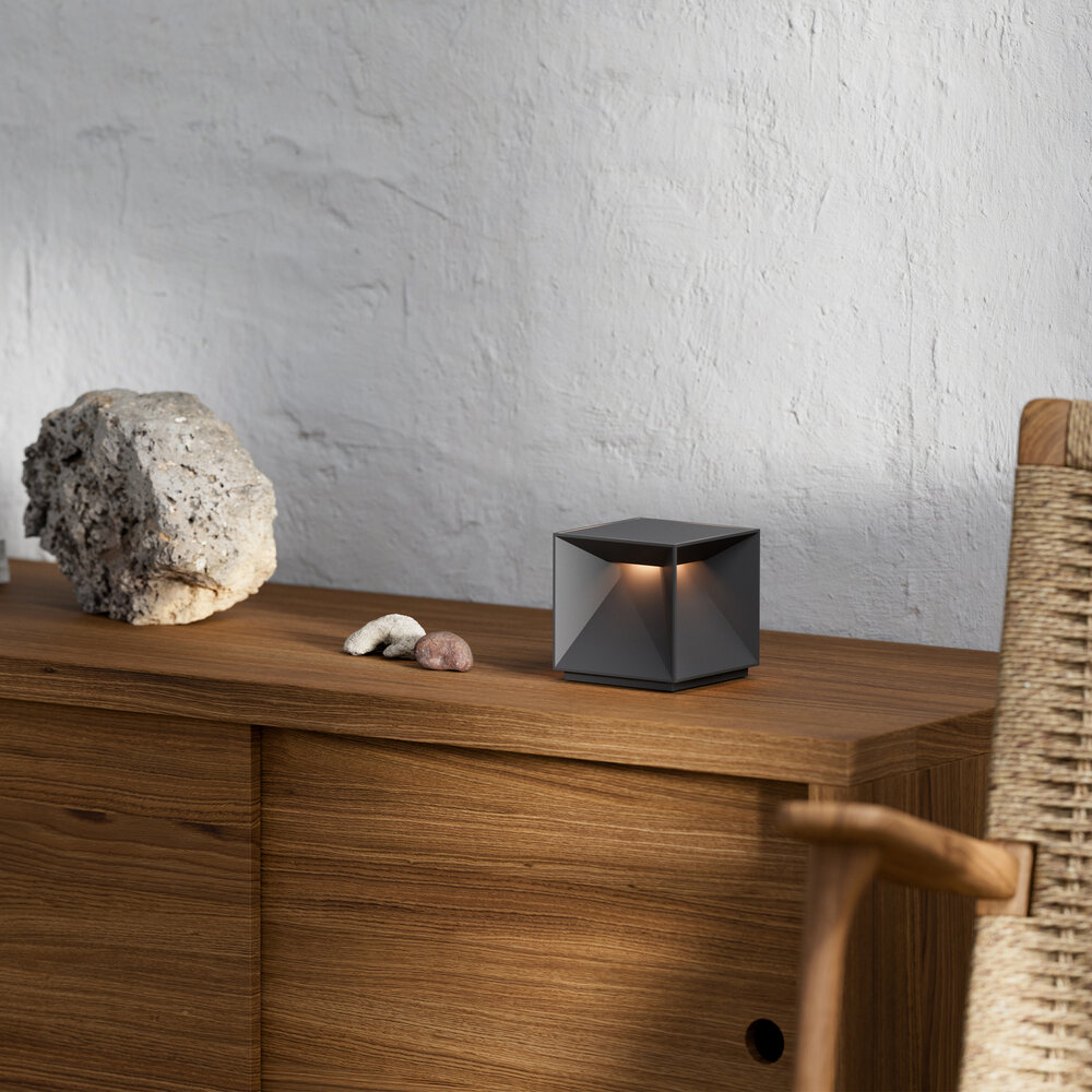 Stilvoll & praktisch: Der einzigartige würfelförmige Akkuleuchte sorgt auf Nachttisch, Schreibtisch und überall dort, wo auf kleinem Raum großflächiges Licht gefragt ist für eine blendfreie Ausleuchtung und angenehmes Akzentlicht nach oben. So vereint die Nutalis zeitloses Design mit modernster, kabelloser LED-Technik.Die angeschrägten Seiten des Kubus reflektieren das Licht auf einzigartige Weise, so dass sie angeschaltet wie ein Kunstobjekt aussieht.