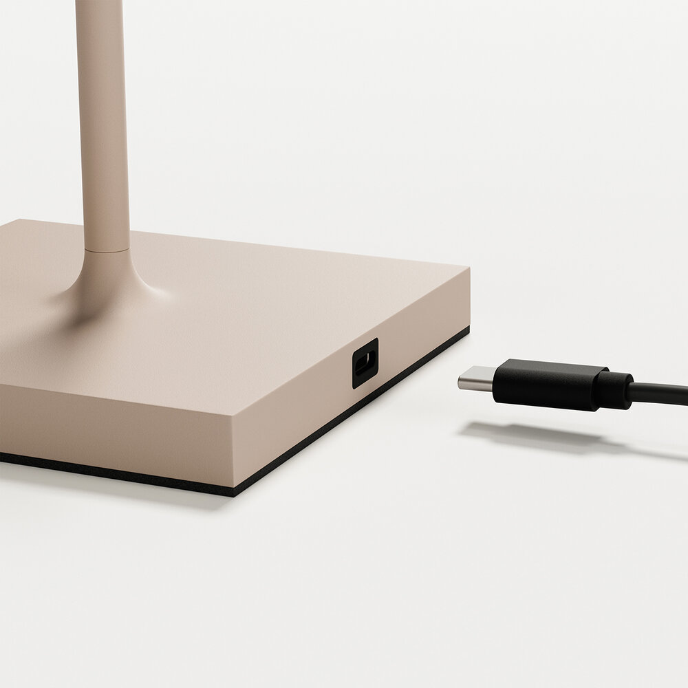 Unser Ersatzfuß für die Nuindie Akku-Tischleuchte ist ein stabiles Fundament für den smarten Leuchtenkopf. Die Leuchte wird über einen USB-C Anschluss geladen, der sich am Fuß befindet.