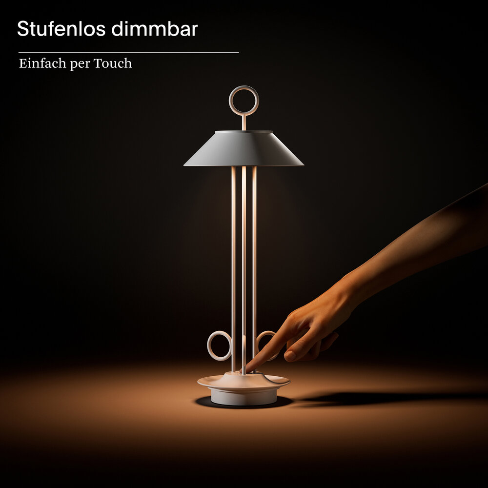 Innen & Außen: Die dimmbare Akku-Tischleuchte für den Wohn- und Außenbereich hält dank Schutzart IP54 (spritzwassergeschützt) auch Regenschauer aus.