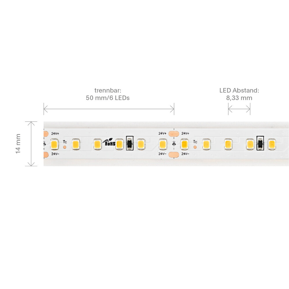 Unsere 9,6W LONG DISTANCE 24V wird für Sie in einer 20 Meter Version produziert. Bei dieser Produktlänge sind auch große Projekte ohne Probleme realisierbar.