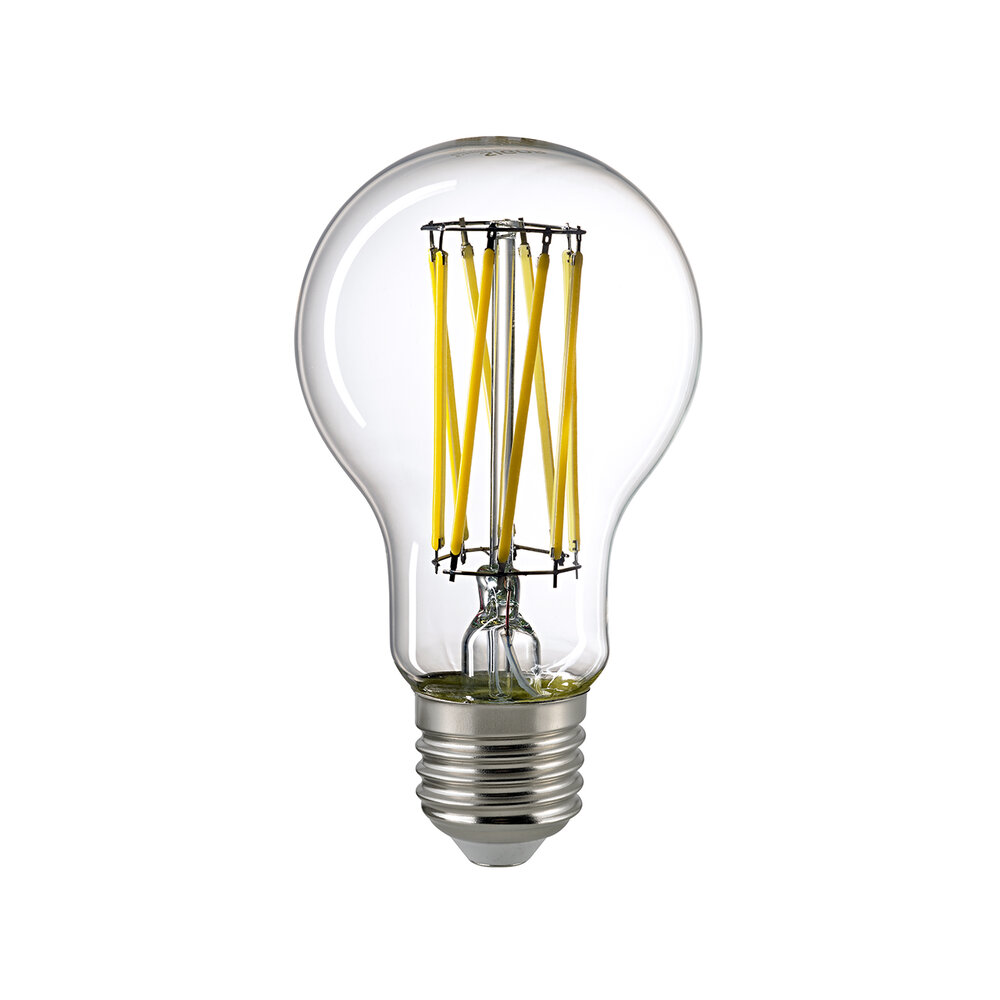 Durch diese besondere Effizienz ist die Lampe sehr sparsam im Verbrauch und schont durch ihren Einsatz die Umwelt gegenüber wenig effizienteren Lampen. Das Lumenpaket unserer Filament lässt sich mit einer 75W herkömmlichen Glühlampe vergleichen. Ihr klarer Glaskolben legt den Blick frei auf die ausgereifte Technik des Leuchtmittels.