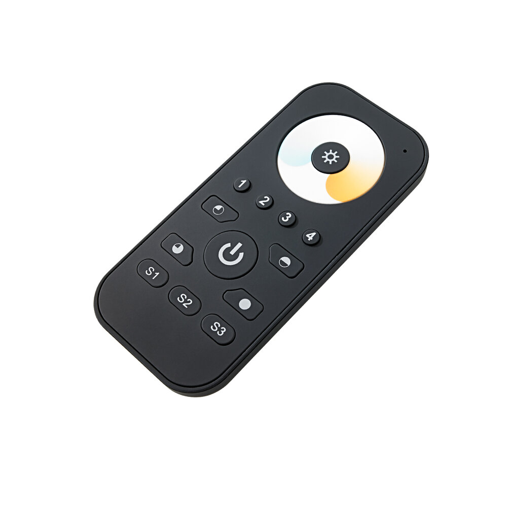 Die Handfernbedienung 4 Kanal CCT wird zur Steuerung Tuneable White-Lichtbändern verwendet. Über die 4 Kanäle lassen sich 4 unterschiedliche Gruppen separat oder gleichzeitig steuern. Im Lieferumfang ist eine Wandhalterung mit enthalten. Die Stromversorgung erfolgt über drei AAA Batterien. Die Reichweite der Fernbedienung beträgt bis zu 30 Metern. Bei der Übertragung wird die 868 MHz Funkfrequenz verwendet. Die Fernbedienung verfügt über eine Momoriefunktion. Diese schaltet den Empfänger wieder in dem zuletzt eingestellten Wert ein.