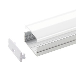 Unser Aufbauprofil 20 in der 2m-Variante findet seinen Einsatzbereich an Wand und Decke. Durch die besondere Breite kann ein Doppelstreifen oder zwei Bänder parallel verbaut werden. Des Weiteren wird es zur Wärmeableitung des LED-Streifen verwendet, wodurch sich die Lebensdauer des verbauten Produktes verlängert. Zusätzlich dient es als Schutz vor Staub und Feuchtigkeit. In Verbindung mit einer opalen Abdeckung wird das Licht gestreut und das Lichtbild deutlich homogener. Alternativ kann auch eine klare Abdeckung verbaut werden. In das Profil können LED-Streifen bis zu einer maximalen Breite von 20,6mm eingebaut werden.