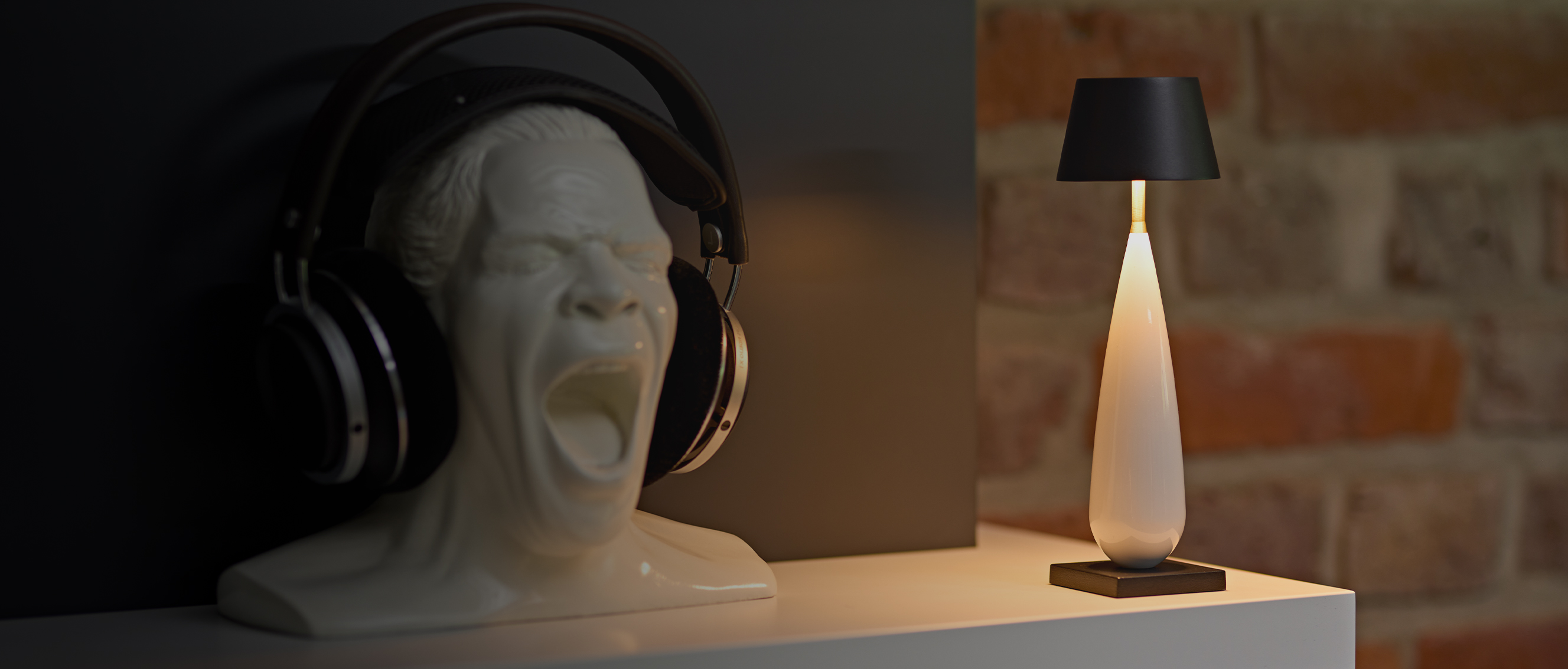 Ganzen. Sockel, Körper und Schirm bilden eine ruhige Einheit
