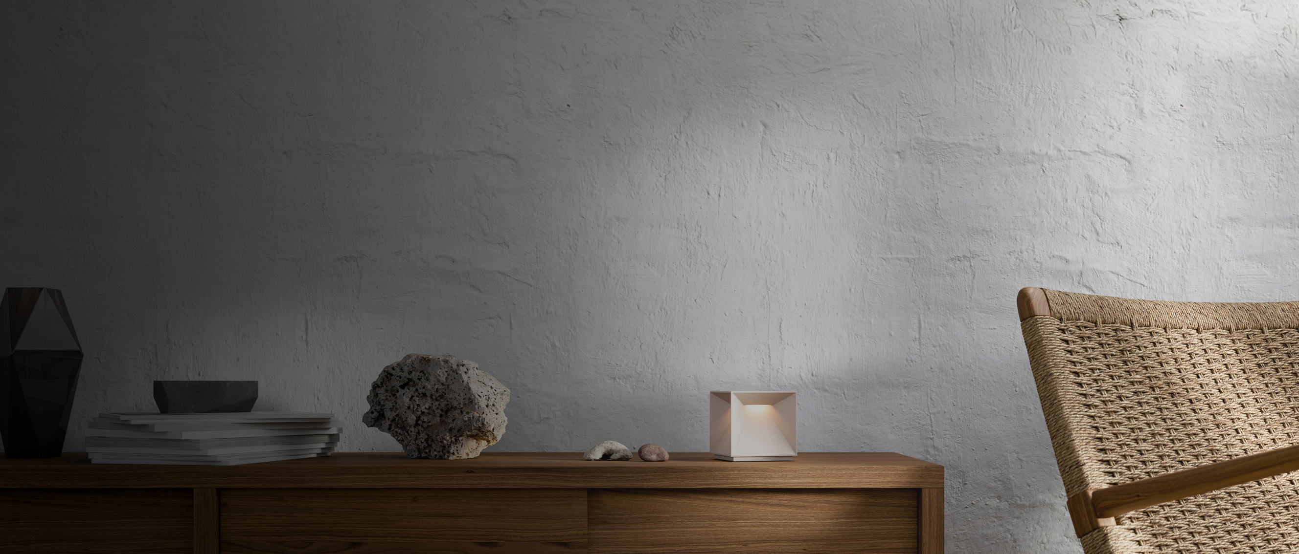 Praktisch für Nachttische, Schreibtische und überall dort, wo auf kleinem Raum großflächiges Licht gefragt ist: Die Sigor Nutalis ist eine würfelförmige Akkuleuchte, aus der flächiges Licht strömt. Die angeschrägten Seiten des Kubus reflektieren das Licht auf einzigartige Weise, so dass sie angeschaltet wie ein Kunstobjekt aussieht.